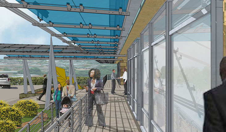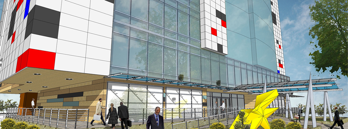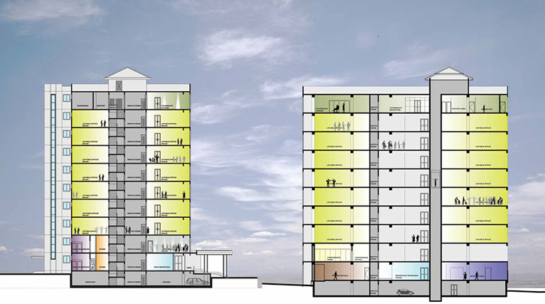 This mid-rise building was designed as the urban infill project to be a modern addition to the Accra metropolitan skyline. The office building comprises ground and top level insurance hall with offices, a first level with conference room and meeting spaces, 7 levels of leasing office spaces, and an underground parking level.