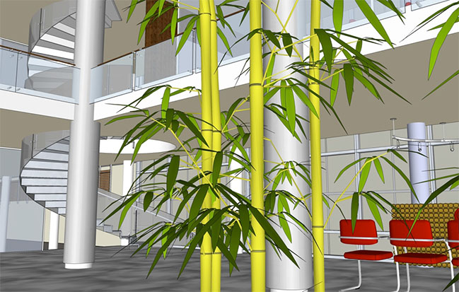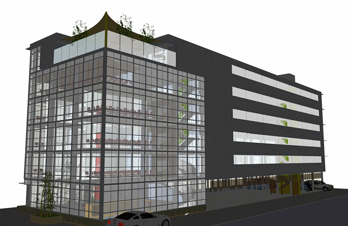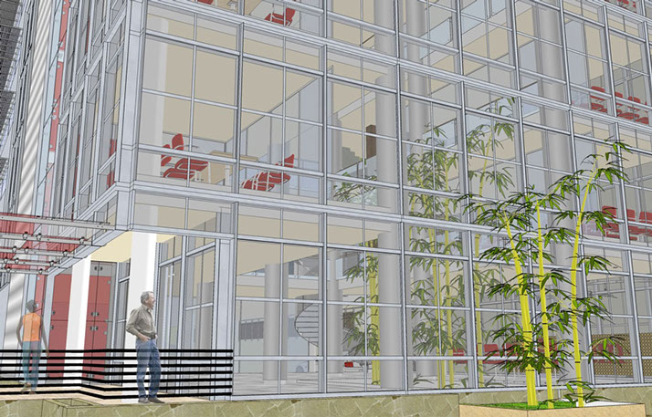 The concepts draws strength from the transparency gained from the using the curtain wall, welcoming visitors with a canyon of ambient natural light that transcend through the indoor