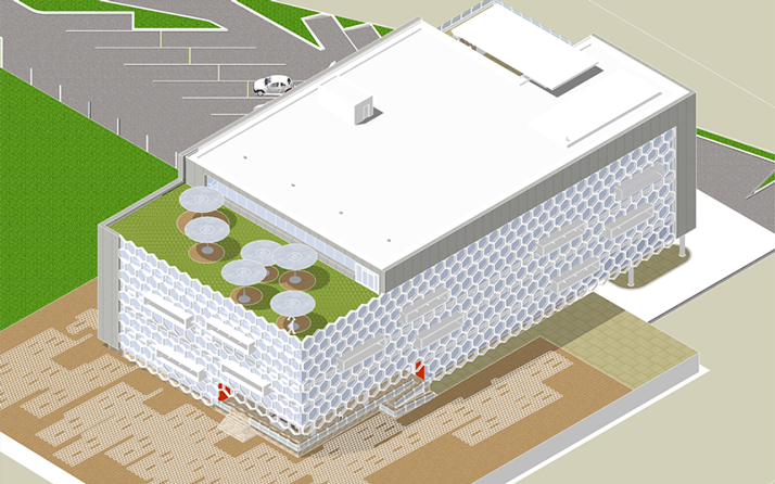In contrast to the traditional enclosed concrete office structures that cuts across the Accra metropolitan area, this building brings back the relationship between the street, the building and how it embraces the local context. The exterior facade, a shading device, expresses lightness and transparency while creating an aesthetically beautiful urban fabric contributing to the new age of innovation that resonates the city.