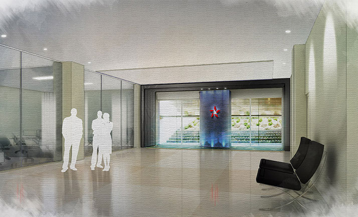 It begins in the lobby where visitors are welcomed with an indoor garden with water feature surrounded by a glass wall. The idea of the garden creates a serene environment in the middle of the city Accra, The garden acts as the focal point for ground offices and the main entry to the multiple floors.2